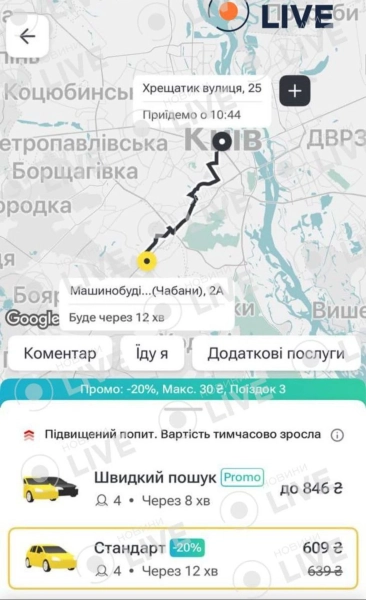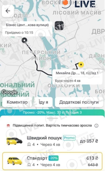 Негода та складні дорожні умови також спричинили суттєве підвищення вартості послуг таксі у столиці.