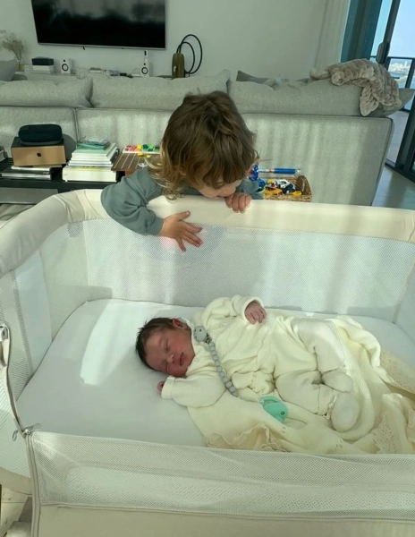 На наступних фотографіях родина постає вже в повному складі. До них приєднався новонароджений Скайлер, ім’я якого пара не приховувала. Прихильники мали змогу одними з перших побачити обличчя наймолодшого члена сім’ї.